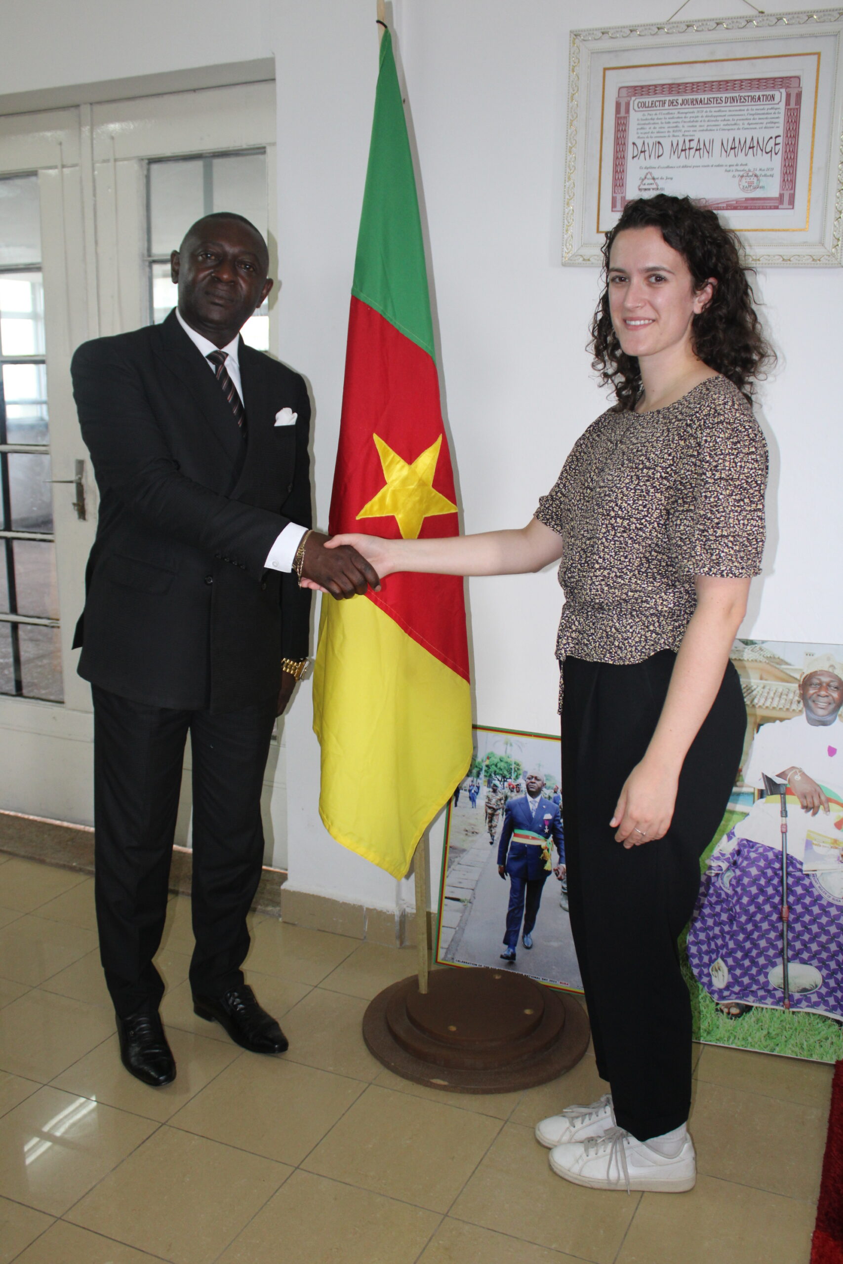 The Lord Mayor of the Buea Municipality, DAVID MAFANI NAMANGE Esq, on the 29th of August 2023, received in audience Miss Jessie Castello, Senior Program Officer of the Global Centre for Pluralism (GCP) based in Ottawa Canada and the CEO of Reach Out Cameroon, Madam NJOMO OMAM Esther.